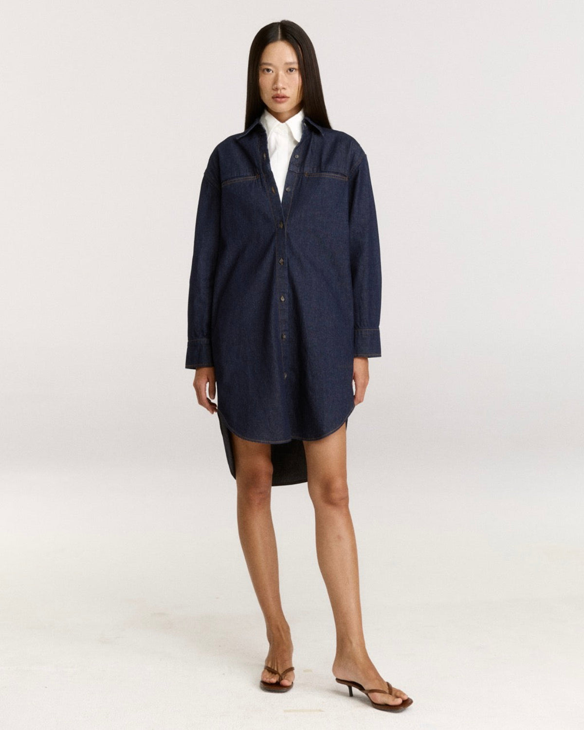 SS25 Denim - Denim Shirt Dress in Raw Dark Denim