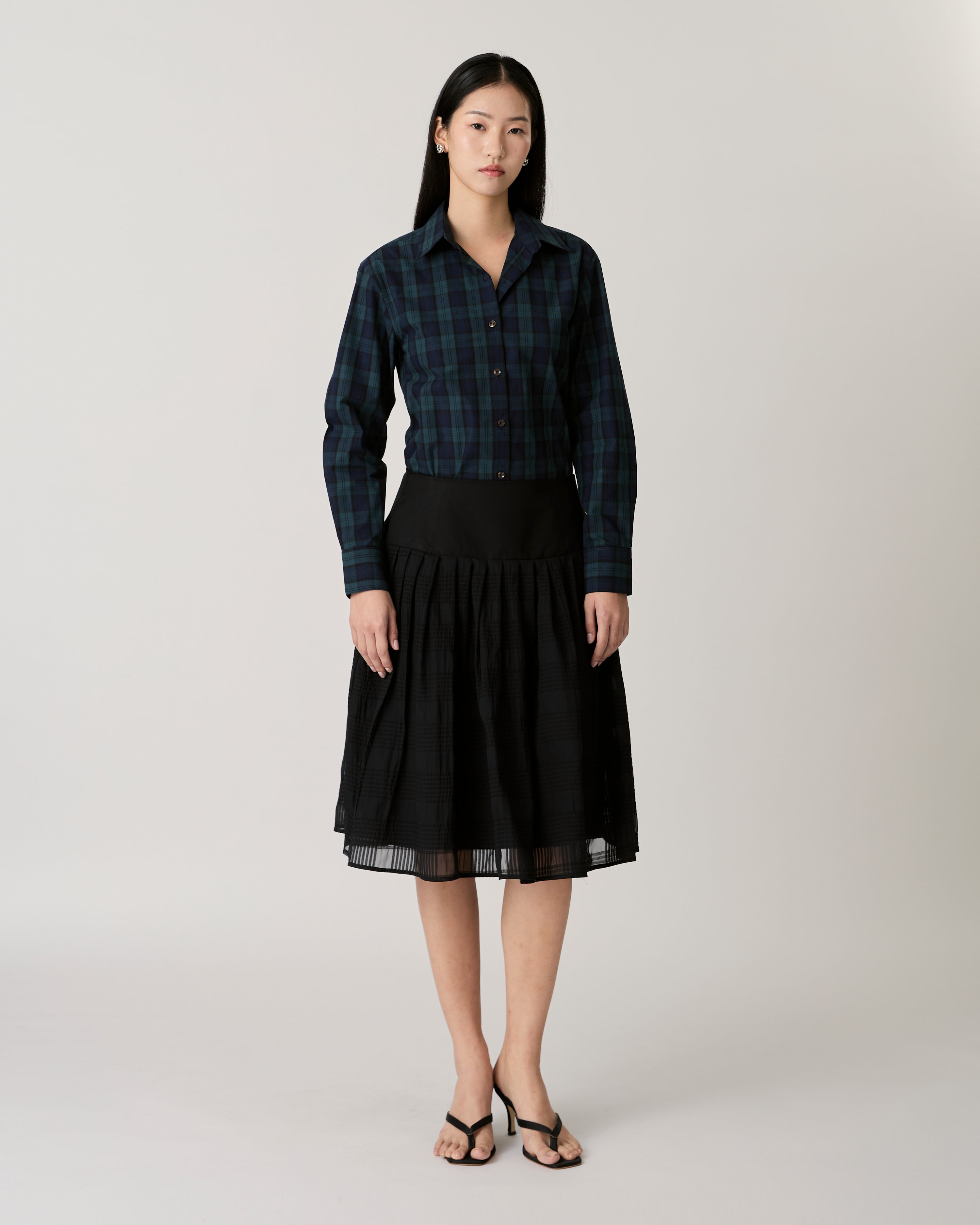 Returns to Nature - Pleated Midi Skirt in Plaid Black