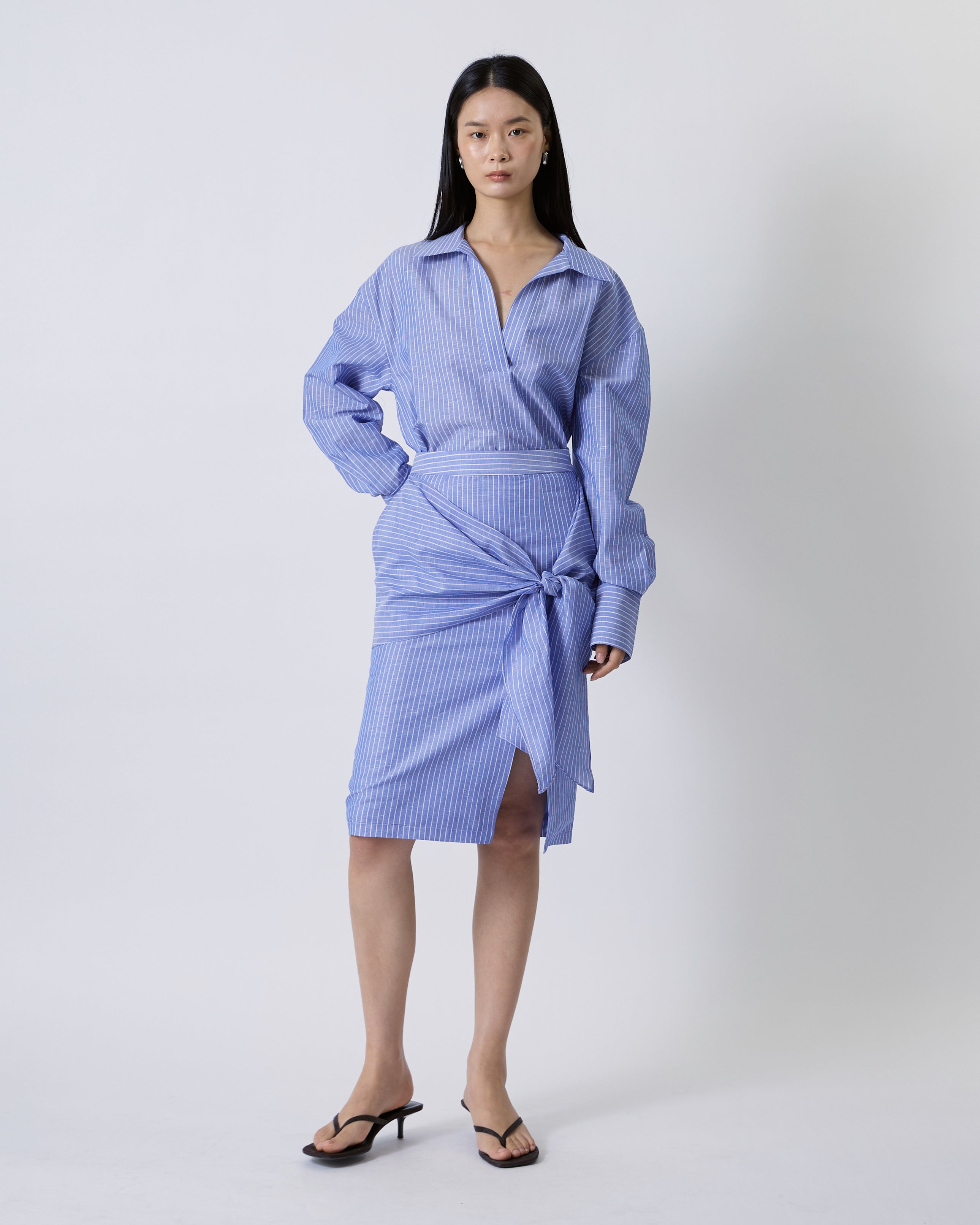 Jungle Urbaine - Front Wrap Skirt in Blue Stripe