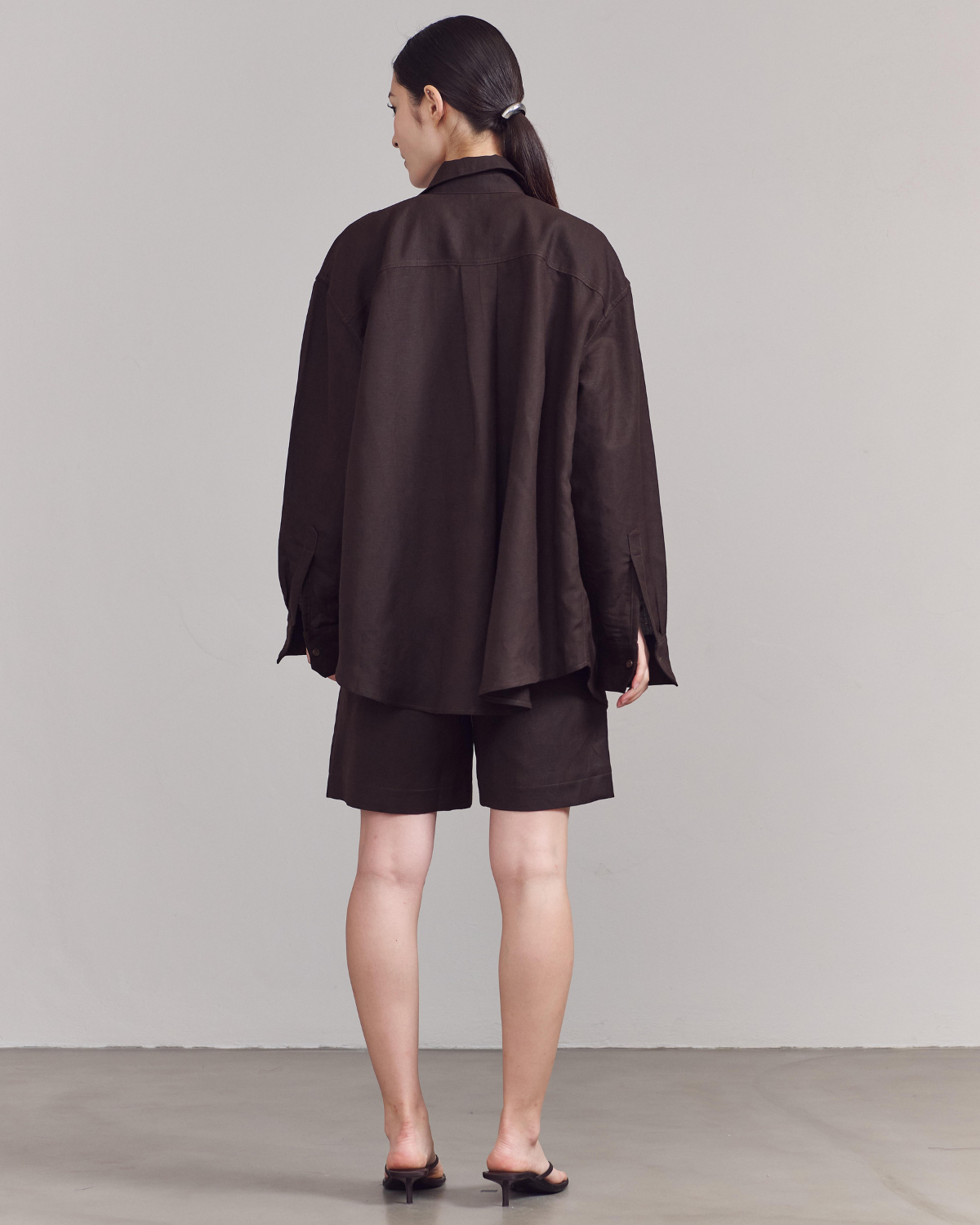 SS25 Lin et Lumière - Essential Bermuda Shorts in Dark Brown Linen
