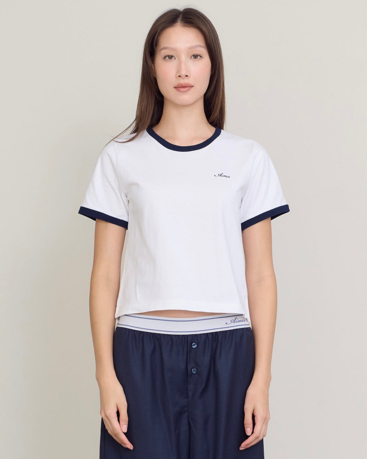 AIMER - Classic Ribbed Contrast T-Shirt in Navy