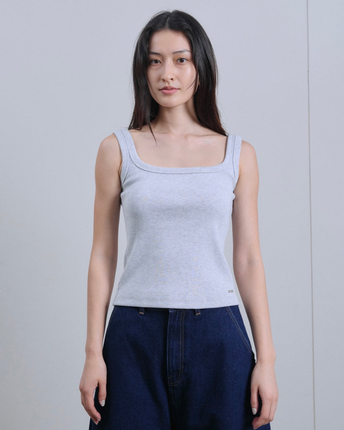 SS25 Denim - Square Neck Ribbed Tank Top in Light Grey