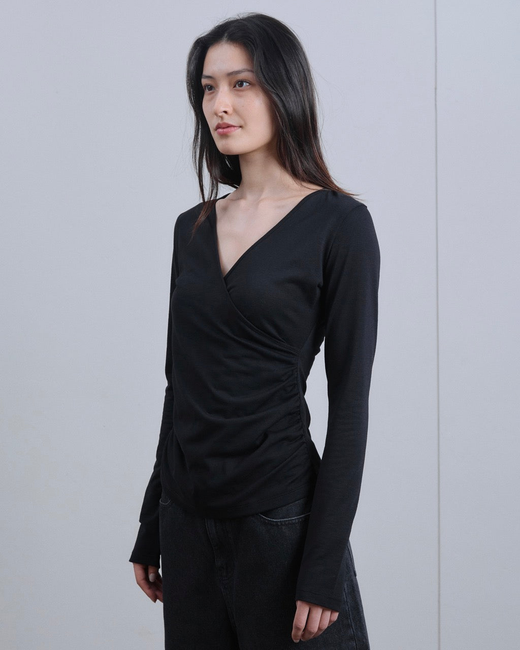 SS25 Denim - Cross V Long Sleeve Top in Black