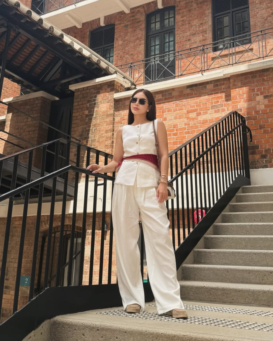 We caught a glimpse of Emi Thasorn Klinnium serving timeless style in pieces from our Hotelier collection. She wears the AIMER Essential Oversized Shirt in Stripe paired effortlessly with the AIMER Elastic Cotton Trousers — a look that blends relaxed tailoring with everyday sophistication.